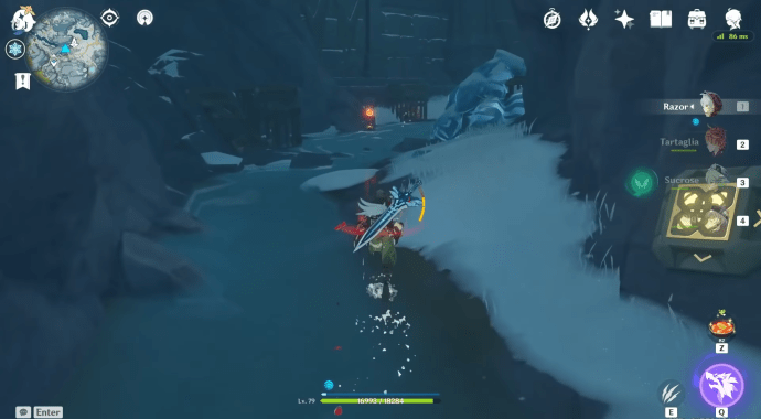 The Dragonspine region is located between Mondstadt and Liyue and can be accessed from either side. However, you need to be prepared – the climate causes severe damage, and your character can freeze to death.