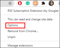 - Click on the extension icon on the Chrome toolbar and select “Options.”
