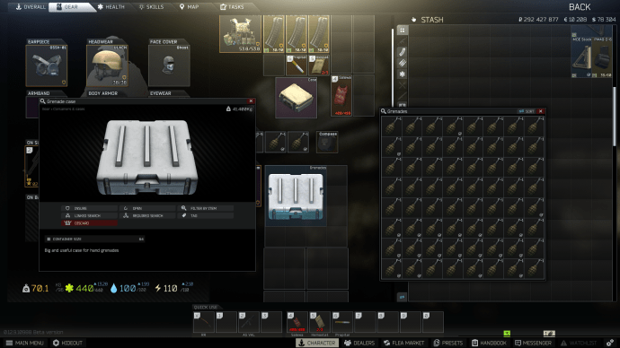 - Grenade case: you can use a grenade case to carry 64 grenade slots. This case takes up nine inventory slots and can be bought from the level 3 Jaeger for 15 SurvL lighters, 15 matches, and eight repellents.