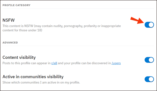 - For underage users, toggle off the NSFW button. For users over the age of 18, toggle it on.