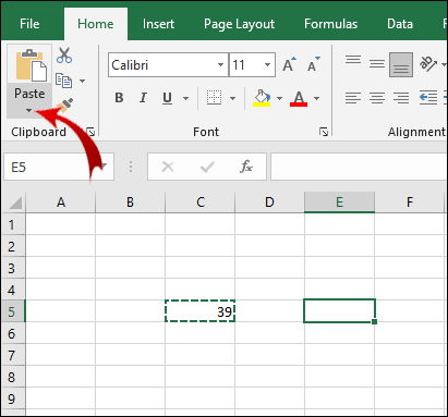 - In the “Clipboard” tab, click on the “Paste” button with a small arrow.