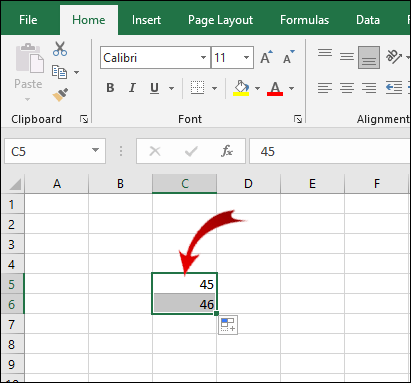 1. Place the cursor on the bottom-right corner of the cell so that it appears as a black cross.