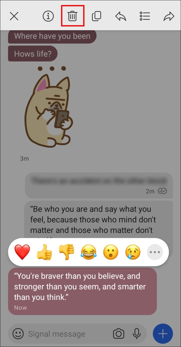 Deleting Signal messages is super easy. You can either delete all your messages from a specific chat or just a single message.