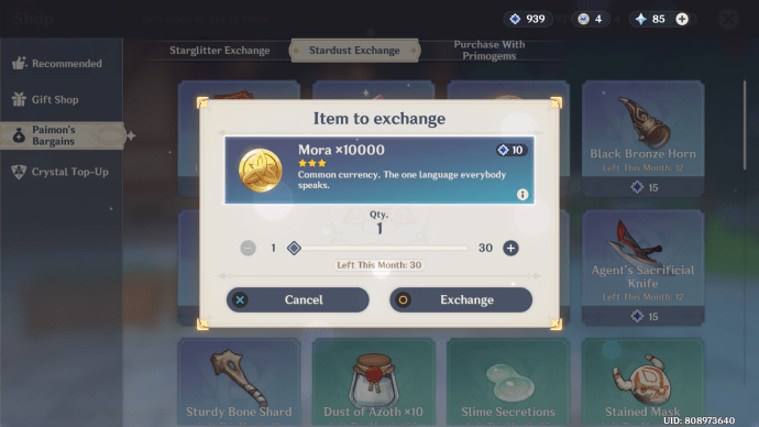 Every time you make a Wish, you get some Stardust as part of your reward. If you can’t find anything in the shop to spend your Stardust on, why not exchange it for Mora? Trading Stardust for Mora is a reliable option for players who spend a lot of time grinding for Fates or who aren’t shy about opening their real-world wallets.