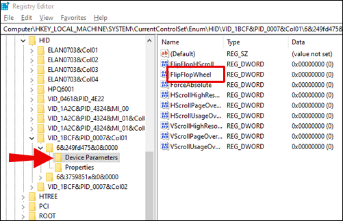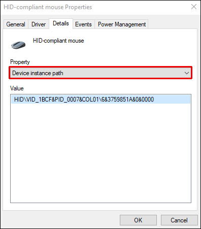 If you own a Windows device, you have to be a bit more tech-savvy. Navigate to the Device Manager, then to ‘’Mice and Other Pointing Devices’’ settings. Right-click on your mouse name and select Properties from the dropdown menu. Navigate to the ‘’Details’’ tab and select ‘’Device Instance Path’’ from the Property menu. Memorize or write down the text in the Value field – you’ll need it soon. Navigate to the Registry Manager, then to this location: HKEY_LOCAL_MACHINE\SYSTEM\CurrentControlSet\Enum\HID.