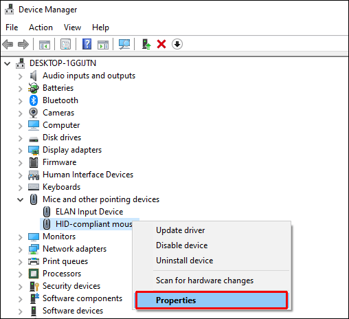 - Right-click your mouse name and select ‘’Properties’’ from the dropdown menu.