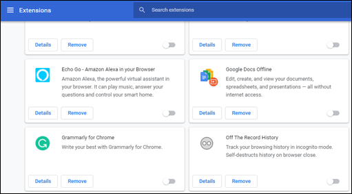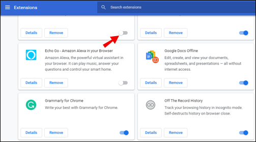 - Click on the Enabled/Disabled slider, drag it towards the left to disable the extensions. Or hit “Delete” if you decide you no longer need it.