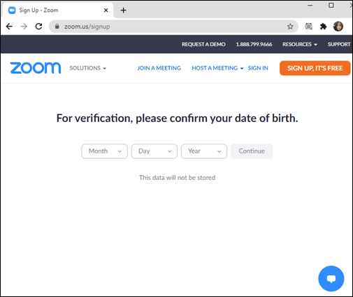 Keep in mind that Zoom has an age restriction of 16 and does not allow access to anyone younger. If you’ve entered a date of birth younger than 16, your browser may have saved the information and will notify Zoom when you attempt to sign in again. In this case, clear your cache before attempting to sign in.