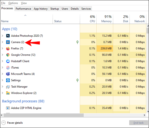 However, if your webcam is glitching, it may be caused by an overrun CPU (Central Processing Unit). Like most software, the camera performance depends on the speed of the processor. Here’s how to check if the CPU usage is at full capacity: