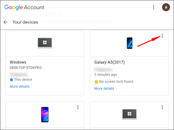 4. Click on the three vertical dots in the tab of the device you want to remove.