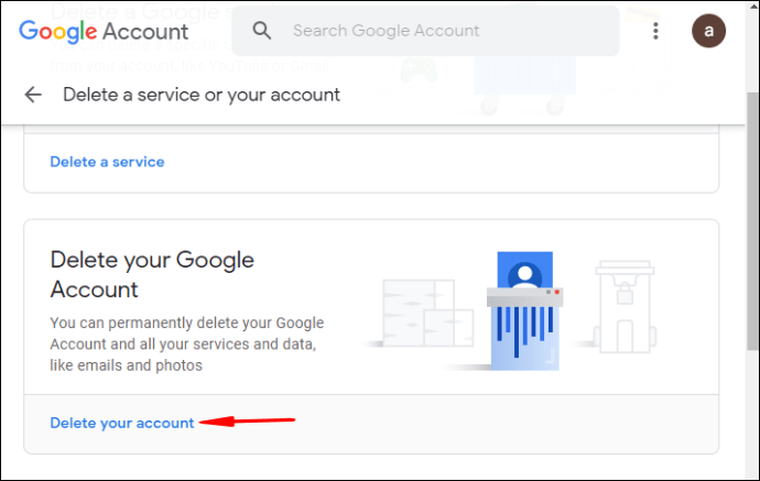 3. In the “Download, delete, or make a plan for your data” tab, click “Delete a service or your account.”