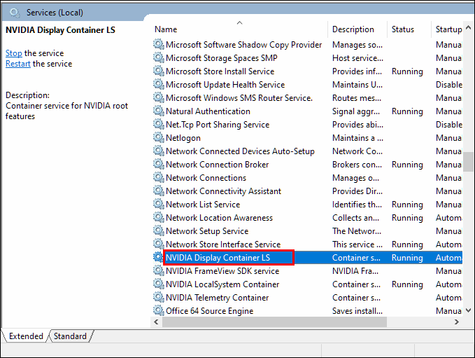 - When the program is open, search for “NVIDIA Display Container LS.”