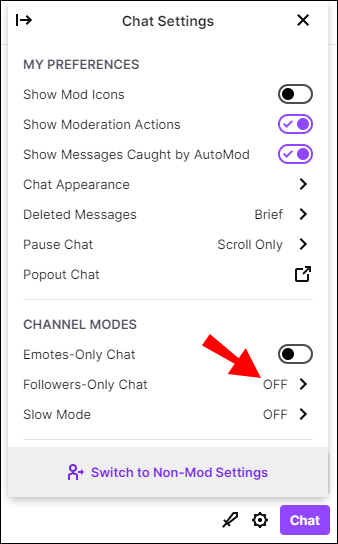 2. Find the “Followers-Only” option and press to turn it on.