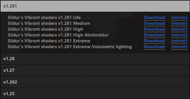 8. Download the desired shader pack zip file. They can be found on several sites online, but we recommend using official developer websites.
