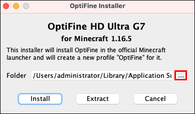 - Find the Optifine launch file on your Mac and double-click it to open the installation window.