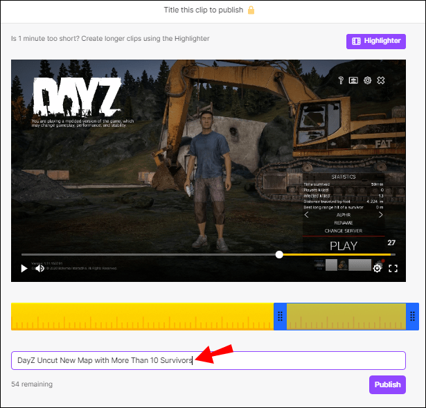 - Tap the ‘’Share’’ button. This option is the easiest and it will appear the moment you have finished editing your clip. Once you name your file, simply select the ‘’Publish’’ option and pick the social media where you want to share your Twitch clip.