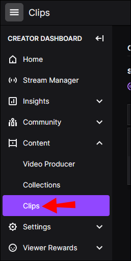 - Go to ‘’Content’’ and then ‘’Clips.’’