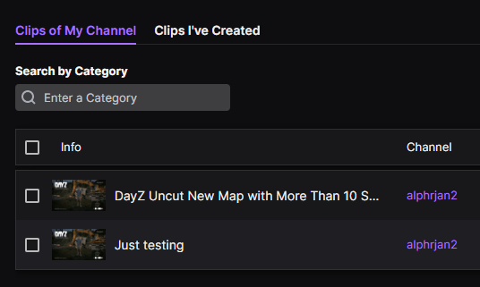 - Choose “Clips I’ve made” or “Clips of my channel.”