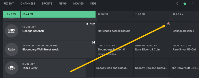 When you return to the channel guide, you should be able to see a red icon next to the title you’ve selected.