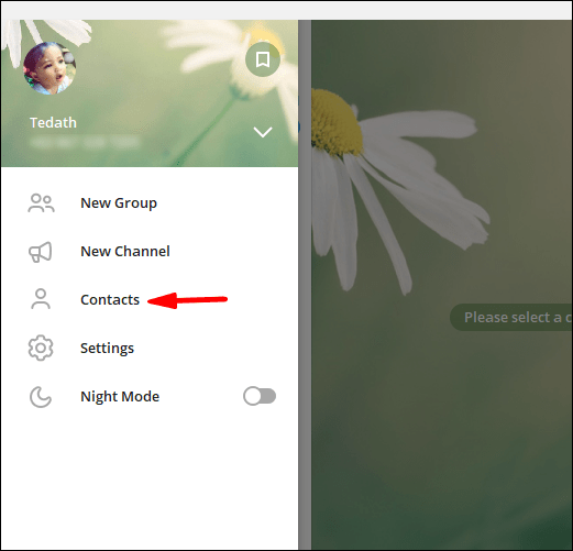 To add contacts on the Telegram desktop app on your Windows 10, follow the steps below:
