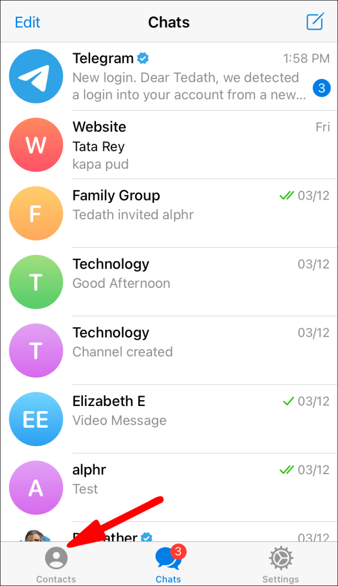 To add contacts on Telegram on an iPhone device, follow the instructions below: