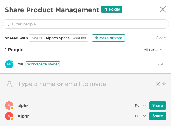 However, to access the full range of permissions, you have to be signed up for a paid plan. Also, guests can only be invited to individual Workspace features, such as lists, folders, or tasks. You can’t add them to the entire Workspace unless they’re upgraded to member status.