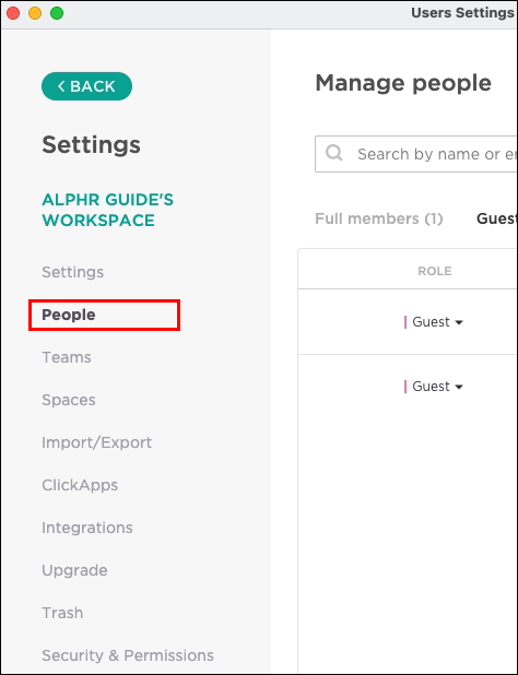 As the Admin, you can manage all members of a particular Workspace (guest users included) by using the ‘’People’’ page on the admin dashboard. You can change the guest’s permission settings, upgrade them to a member, or even remove them from the feature entirely.