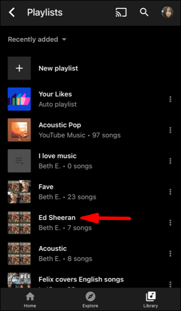 1. Select one of the playlists from your YouTube Music.