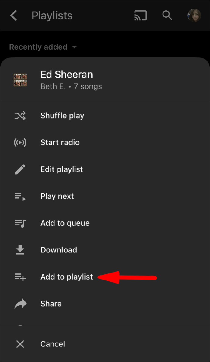 - From the pop-up menu, select “Add to playlist.”
