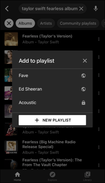 - Tap on the playlist where you added the album.