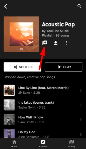 - You’ll see countless music playlists arranged by categories. Tap on the “+” icon, and it will automatically appear in your Library.
