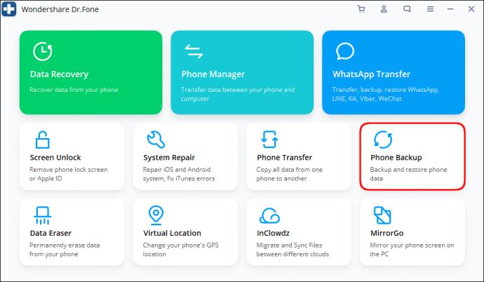 - Launch the program and press “Phone Backup.”