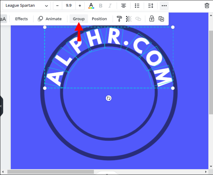 - Click “Group,” located at the upper right corner of your screen. Adjust the text position if needed.