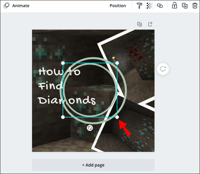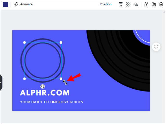 - Tap and hold a corner of the blue frame around the second circle. Drag it to make the circle smaller.