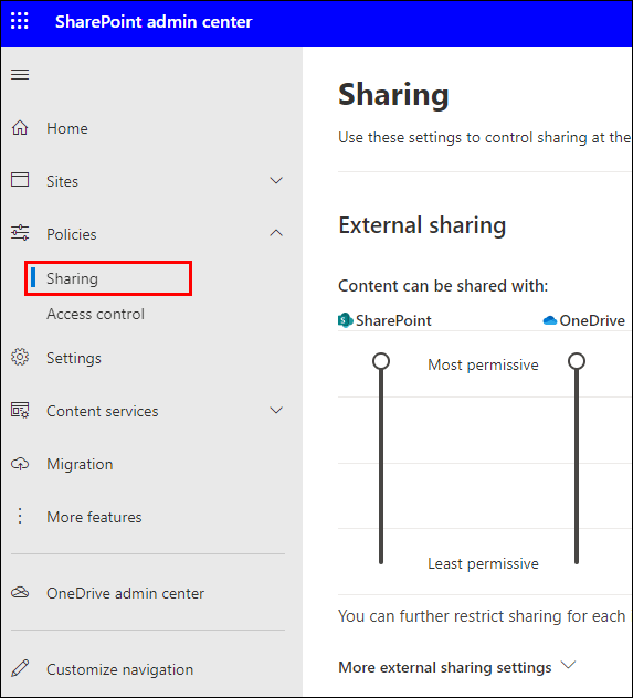 To activate the setting, you have to be a SharePoint manager in Microsoft 365. Site managers don’t have the authority to enable or disable external sharing. Here’s how to do it: