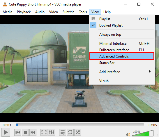 - Go to “View” in the menu bar, and then to “Advanced controls.”