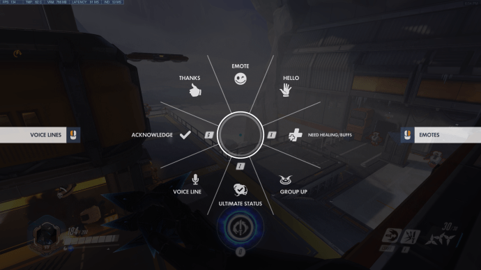 The fast chat is a replacement for the common text- and voice-chat options for those that don’t want to use them. The communication selection wheel comes with 24 different options that ease communication in the team (not including the emote and custom voice lines, which are purely cosmetic). You can only put eight of these on the wheel at a time in your settings menu (look under the social tab if you can’t find it).
