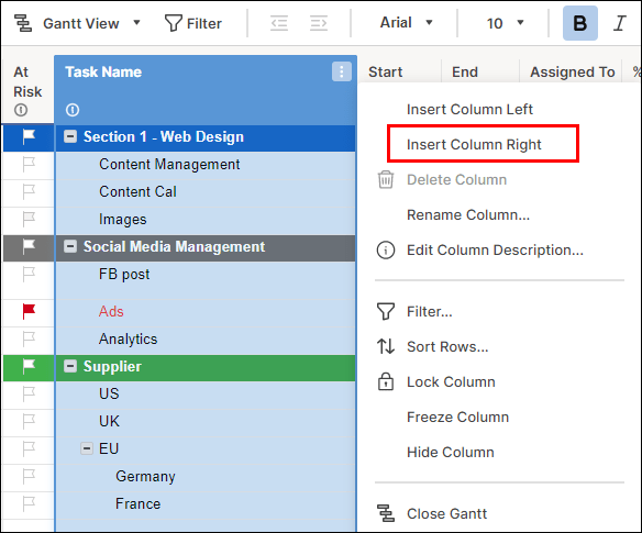 - Open Smartsheet and decide where you want to add a dropdown column.