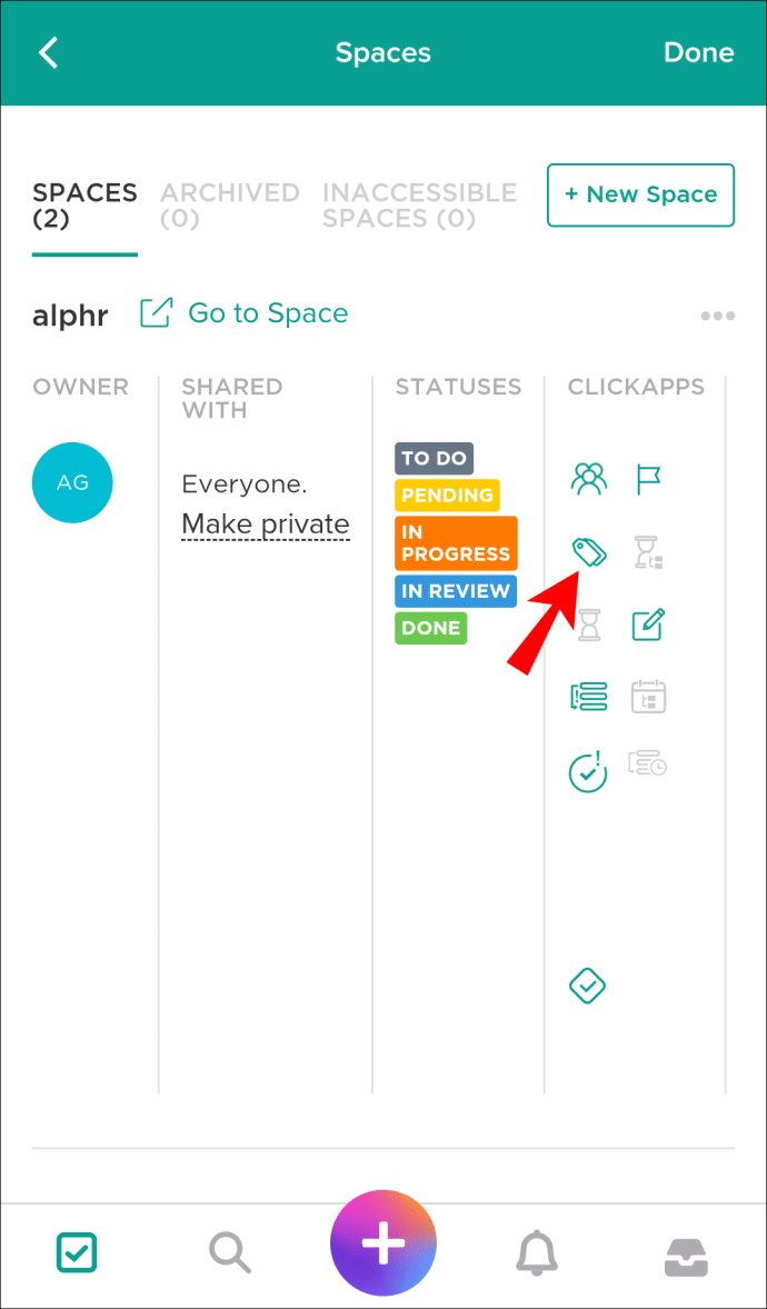 - Click the tag icon next to any of your tasks – this will open a list of all the tags within your Space.