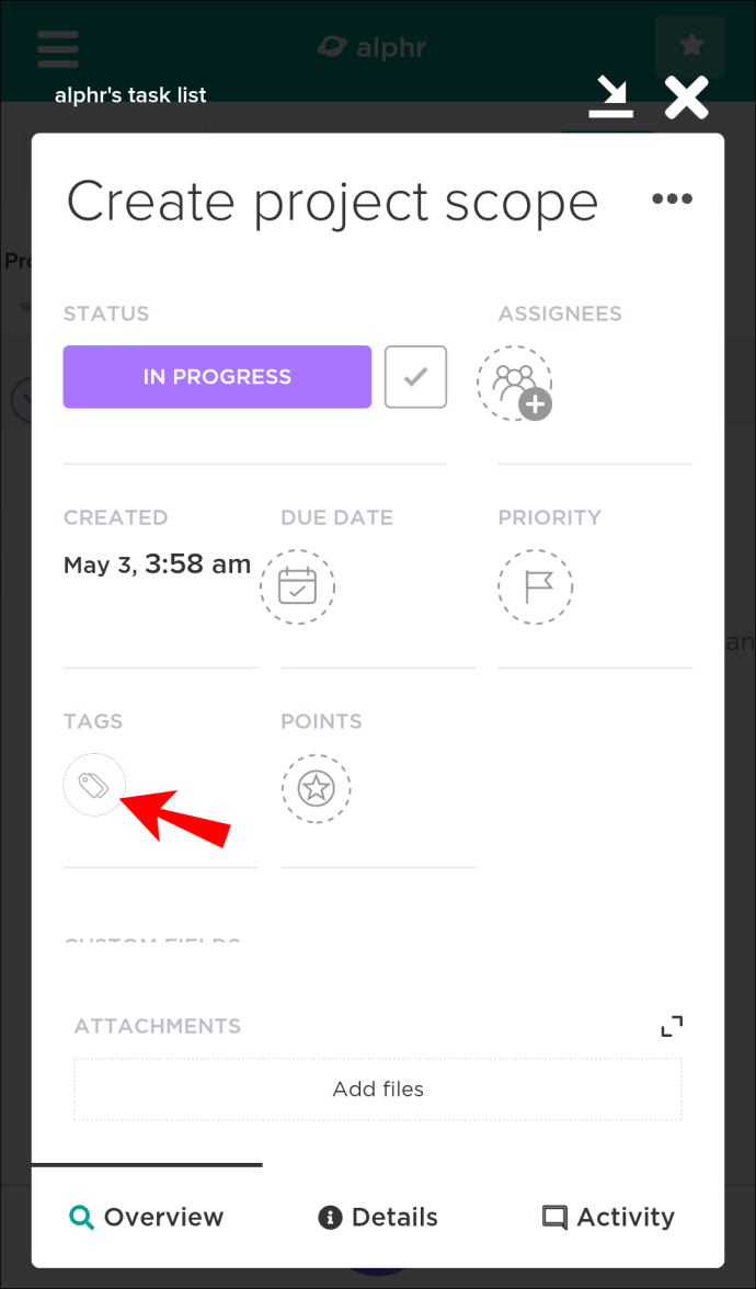 ClickUp mobile app features the same tag functionality as the desktop version. To add a tag to your task using an Android phone, follow the steps below: