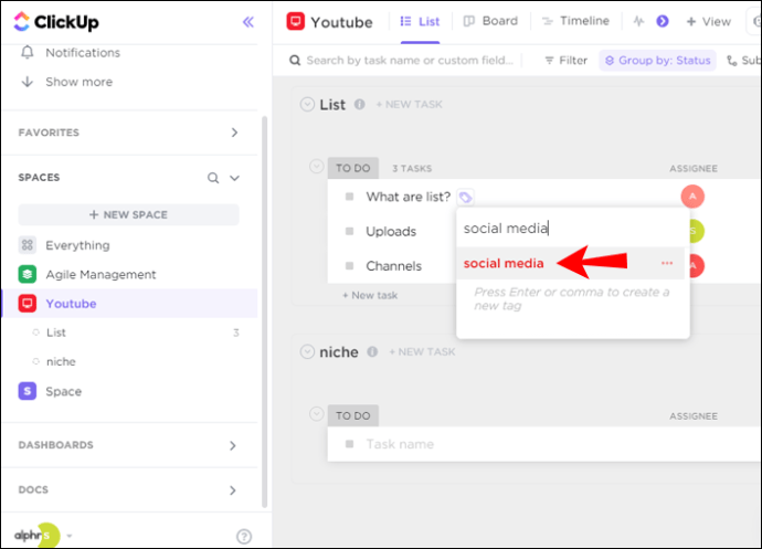 If you’re using ClickUp on a Windows PC, follow the steps below to add tags to your tasks: