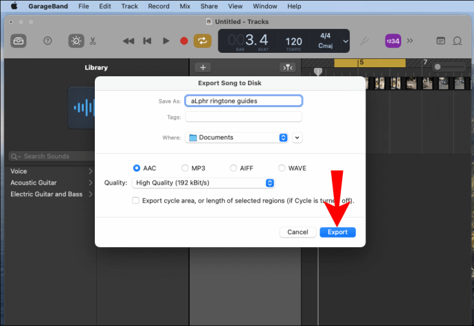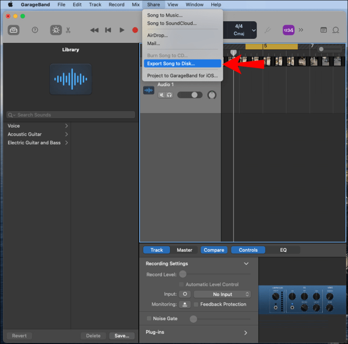 - Once you’re happy with your ringtone, from the menu, select “Share” > “Export Song to Disk.”
