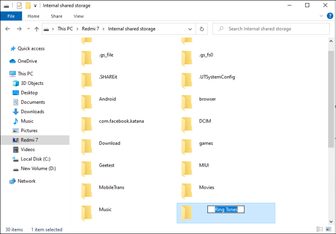 - Access your “Ringtones” folder, if there isn’t a dedicated ringtones folder you’ll need to create one.