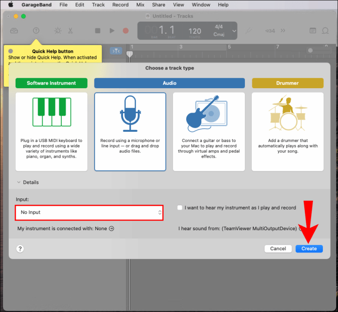 - Ensure “No Input” is enabled before selecting the “Create” option.