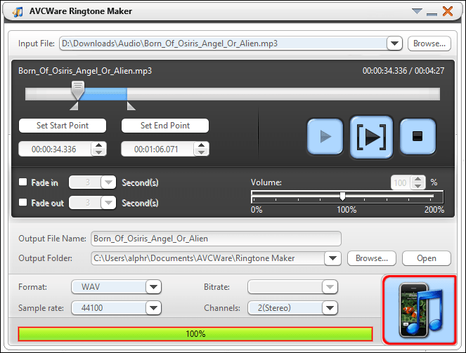 Customize your ringtone using AVCWare Ringtone Maker for Windows: