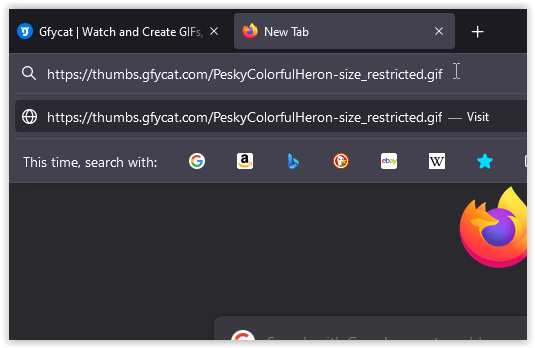 - Paste the copied link to a new browser tab and press “Enter” to load the animated image URL.