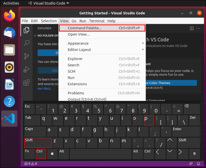 Let’s take a look at how you’ll open the Command Palette in VS Code. We’ll start with the Linux version: