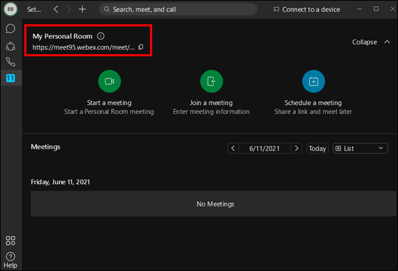 - Go to the “Personal room” on the left sidebar of the window.