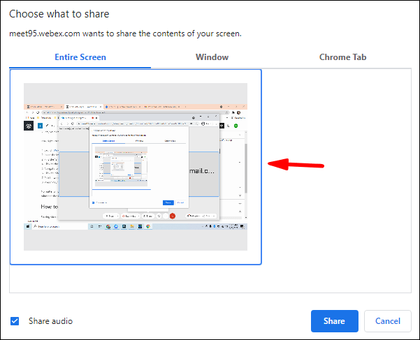 - Pick between “Your entire screen” and “Chrome tab.”