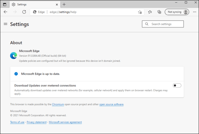 - If your browser is updated, you’ll see “Microsoft Edge is up to date.” If it’s not, it will automatically look for updates.